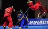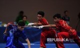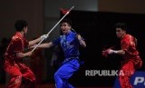 REPUBLIKA.CO.ID, MANILA -- Cabang Wushu kembali menyumbang emas untuk Indonesia pada SEA Games 2019. Tim Duilian (koreografi pertarungan) Yang dibawakan Edgar Xavier Marvelo, Harris Horatius, Seraf Naro Siregar tampil apik di World Trade Center, Manila, Selasa (3/12).