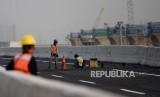 REPUBLIKA.CO.ID, CIKAMPEK -- Pengerjaan proyek jalan tol layang Jakarta-Cikampek di Kawasan Cikarang Utama, Jawa Barat, Rabu (12/4) memasuki penyelesaian akhir.