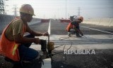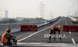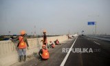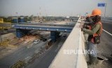 Pekerja beraktivitas di proyek jalan tol layang Jakarta-Cikampek di Kawasan Cikarang Utama, Jawa Barat, Rabu (12/4). (FOTO : Republika/Prayogi)