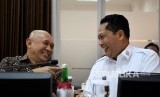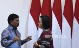 Menteri Koperasi dan UKM Teten Masduki (kiri) bersama Kepala Bulog Budi Waseso (kanan) mengikuti rapat terbatas tentang pengelolaan cadangan beras pemerintah di Kantor Presiden, Jakarta, Rabu (4/12/2019). (FOTO : Antara/Puspa Perwitasari)