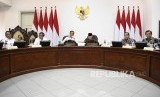 Presiden Joko Widodo (tengah) didampingi Wakil Presiden Maruf Amin (ketiga kanan) memimpin rapat terbatas tentang pengelolaan cadangan beras pemerintah di Kantor Presiden, Jakarta, Rabu (4/12/2019). (FOTO : PUSPA PERWITASARI/ANTARAFOTO)
