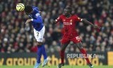 Sadio Mane mengontrol bola di udara pada laga Liga Inggris antara Liverpool dan Everton di Anfield Stadium, Liverpool, Kamis (5/12) dini hari . (FOTO : Jon Super/AP Photo)