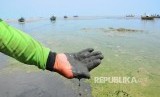 Nelayan menunjukkan lumpur hitam yang mencemari kawasan Pantai Pasir Putih Wates di Desa Tasikharjo, Kaliori, Rembang, Jawa Tengah, Rabu (4/12/2019). Menurut nelayan setempat sejak sebulan terakhir kawasan pantai sepanjang lima kilometer tersebut tercemar limbah yang diduga berasal dari aktivitas puluhan pabrik pengolahan ikan di wilayah sekitar, (FOTO : Yusuf Nugroho/Antara)