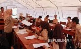 Sejumlah murid Sekolah Khusus penyandang tuna rungu, tuna wicara dan tuna grahita dari tingkat SD hingga SMA mengikuti ujian akhir semester di dalam tenda darurat yang disediakan Kementerian Pendidikan di Serpong, Tangerang Selatan, Banten, Rabu (4/12/2019). Sekolah Khusus Assalam 1 yang terancam longsor akibat pergeseran struktur tanah di kawasan Serpong. (FOTO : Muhammnad Iqbal/Antara)