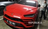 Fungsional pada Koordinasi Supervisi dan Pencegahan Korwil 3 Komisi Pemberantasan Korupsi (KPK) Friesmount Wongso (kanan) berada di samping mobil Lamborghini yang menggunakan plat nomor palsu saat razia pajak di Apartemen Regatta, Jakarta Utara, di Jakarta, Kamis (5/12/2019). (FOTO : Antara/M Risyal Hidayat)