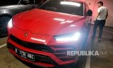 Seorang pemilik berada di samping mobil Lamborghini yang menggunakan plat nomor palsu di Apartemen Regatta, Jakarta Utara, di Jakarta, Kamis (5/12/2019). (FOTO : Antara/M Risyal Hidayat)