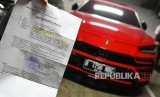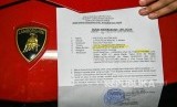 Surat keterangan ijin jalan mobil Lamborghini yang menggunakan plat nomor palsu ditunjukkan oleh petugas saat razia pajak di Apartemen Regatta, Jakarta Utara, di Jakarta, Kamis (5/12/2019). (FOTO : Antara/M Risyal Hidayat)