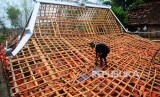 Sementara beberapa rumah di Desa Anggaswangi, Godong, Grobogan, Jawa Tengah, roboh akibat diterjang angin puting beliung Kamis (5/12). Menurut warga, angin puting beliung yang menerjang tiga desa di wilayah tersebut pada Rabu (4/12/2019) petang mengakibatkan ratusan rumah rusak sedang dan ringan serta dua rumah roboh rata dengan tanah..