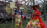 Mahasiswa Universitas Riau memperagakan busana dari bahan bekas (sampah) dalam rangkaian UR Expo 2019 di Pekanbaru, Riau, Kamis (5/12/2019). Peragaan busana berbahan dasar sampah ini diharapkan dapat mengedukasi masyarakat tentang pentingnya memanfaatkan bahan bekas sampah. (FOTO : Ronny Muharman/Antara)