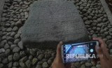 Pengunjung mengambil foto batu prasasti aksara sunda di Situs Astana Gede, Dusun Indrayasa, Kawali, Kabupaten Ciamis, Jawa Barat, Kamis (5/12/2019). Objek wisata sejarah di kawasan tersebut merupakan kompleks pusat peninggalan sejarah dan budaya masa lalu kerajaan Sunda Galuh. (FOTO : Adeng Bustomi/Antara)
