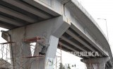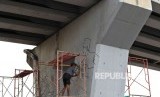 REPUBLIKA.CO.ID, JAKARTA -- Pekerja melukis mural pada dinding Jalan Layang Pesing di Jakarta Barat, DKI Jakarta, Jumat (6/12/2019).