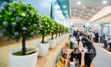 Pengunjung melihat produk yang dipamerkan saat gelaran Halal Expo Indonesia di Ice BSD, Tangerang, Banten, Jumat (6/12). (FOTO : thoudy Badai_Republika)