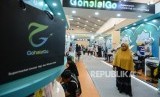 Pengunjung melihat produk yang dipamerkan saat gelaran Halal Expo Indonesia di Ice BSD, Tangerang, Banten, Jumat (6/12). (FOTO : Thoudy Badai_Republika)