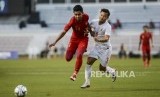 Pemain Timnas Indonesia Saddil Ramdani menguasai bola dengan dibayangi pemain Timnas Myanmar pada pertandingan semi final sepak bola Sea Games 2019 di Rizal Memorial Stadium, Manila, Filipina, Sabtu (7/12). (FOTO : Republika/Putra M. Akbar)