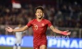 Pemain Timnas Indonesia Osvaldo Ardiles Haay berselebrasi usai membobol gawang Timnas Myanmar pada pertandingan semi final sepak bola Sea Games 2019 di Rizal Memorial Stadium, Manila, Filipina, Sabtu (7/12). (FOTO : Republika/Putra M. Akbar)