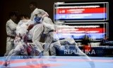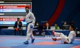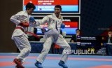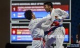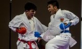 REPUBLIKA.CO.ID, JAKARTA -- Atlet karate Indonesia Rifki Arrosyid saat bertanding melawan atlet karate Laos Salanh Manisinh pada babak perempat final kumite 60 kilogram di Wotld Trade Center, Manila, Filipina, Ahad (8/12).