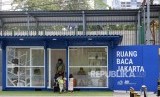 Warga memanfaatkan ruang baca di kawasan Stasiun MRT Dukuh Atas, Jakarta Pusat, Ahad (8/12). (FOTO : Republika/Prayogi)