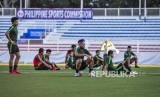 Sejumlah pemain Timnas Indonesia U-22 beristirahat disela sesi latihan di Rizal Memorial Stadium, Manila, Filipina, Senin (9/12). (FOTO : Republika/Putra M. Akbar)