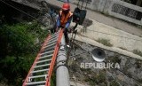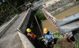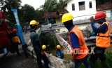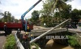 Imbas Bencana Hidrometeorologi. Petugas PLN mengevakuasi tiang listrik yang tumbang imbas bencana meteorologi di Minggir, Sleman, Yogyakarta, Senin (9/12). (FOTO : Republika/ Wihdan)