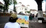 REPUBLIKA.CO.ID, YOGYAKARTA -- Perupa melukis di kawasan Malioboro, Yogyakarta, Selasa (10/12). Melukis Malioboro secara bersama oleh 100 perupa ini untuk memeriahkan pameran tunggal Hendro Purwoko. Selain itu, juga untuk memperingati Hari HAM dan Selasa Wage Malioboro.