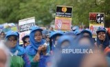 Kampanye Antikekerasan Perempuan dan Anak. Peserta aksi dari Himpaudi menggelar kampanye antikekerasan terhadap perempuan dan anak di Malioboro, Yogyakarta, Selasa (10/12). (FOTO : Republika/ Wihdan)
