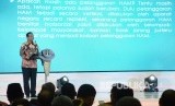 Menteri Koordinator bidang Politik, Hukum dan Keamanan Mahfud MD menyampaikan sambutan pada Peringatan Hari Hak Asasi manusia Sedunia ke-71 Tahun 2019 di Gedung Merdeka, Kota Bandung, Selasa (10/12). (FOTO : Republika/Edi Yusuf)