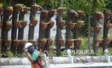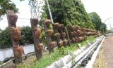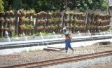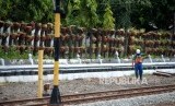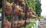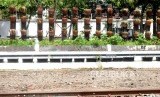 REPUBLIKA.CO.ID, YOGYAKARTA -- Bantalan rel bekas yang sudah dipasang pot bunga berjejer di tepi Stasiun Tugu, Yogyakarta, Rabu (11/12).