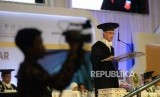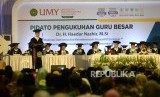 Pengukuhan Guru Besar Haedar Nashir. Pidato pengukuhan guru besar oleh Prof Haedar Nashir di Sportorium UMY, Yogyakarta, Kamis (12/12). (FOTO : Republika/ Wihdan)