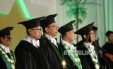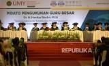 Pengukuhan Guru Besar Haedar Nashir. Prof Haedar Nashir bersama jajaran senat mengikuti upacara Pengukuhan Guru Besar di Sportorium UMY, Yogyakarta, Kamis (12/12). (FOTO : Republika/ Wihdan)