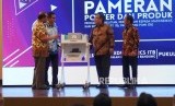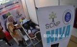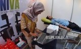 NIVA. Seorang staf booth Selaras Cinta Nusantara Perkasa (SCNP) mengoperasikan purwarupa perangkat medis Non Invasive Vascular Analyzer (NIVA) di Gedung CRCS ITB, Bandung, Jawa Barat, Kamis (12/12). (FOTO : Yogi Ardhi/Republika)