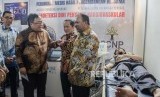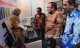 Menristek/Kepala BRIN Bambang Brodjonegoro (kedua kanan) bersama Rektor ITB Kadarsah Suryadi (kedua kiri) dan Direktur Keuangan SCNP Setiyo Bonorowanto (kanan) meninjau purwarupa Perangkat Medis Non Invasive Vascular Analyzer (NIVA) di Gedung CRCS ITB, Bandung, Jawa Barat, Kamis (12/12). (FOTO : Yogi Ardhi/Republika)