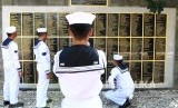 Sejumlah prajurit KRI Usman Harun-359 mengamati nama-nama prajurit yang dimakamkan di Taman Makam Pahlawan Seroja, ketika ziarah, di DIli, Timor Leste, Jumat (13/12/2019). (FOTO : Antara/Zabur Karuru)
