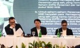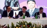 Komisaris Utama PT Mahaka Media Tbk yang baru R. Harry Zulnardy (kiri), Komisaris Independen Harry Danui (tengah), Direktur Utama Adrian Syarkawie (kanan) memimpin Rapat Umum Pemegang Saham Mahaka di Jakarta, (13/12). (FOTO : Thoudy Badai_Republika)