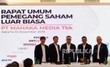 REPUBLIKA.CO.ID, JAKARTA -- PT Mahaka Media Tbk. (ABBA) menggelar Rapat Umum Pemegang Saham Luar Biasa di Jakarta. Agenda RUPSLB tersebut, terkait perubahan susunan anggaran anggota Dewan Komisaris perseroan.