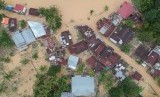 Foto udara kondisi rumah yang rusak akibat banjir bandang, di Nagari Pakan Raba (FOTO : Antara/Iggoy el Fitra)