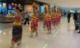 Iringan-iringan penari berpakaian tradisional Bali melintasi termina Bandara Internasional I Gusti Ngurah Rai, Denpasar, Bali. (FOTO : Istimewa)