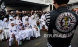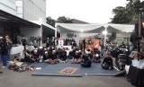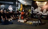 Bikers Dakwah mengajak para pengendara saling rangkul dalam memperkuat Iman dalam perayaan ulang tahun pertama di Royal Enfield Pejaten, Jakarta Selatan, Sabtu (14/12). (FOTO : Republika/Rossi Handayani)