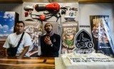 Ketua Komunitas Motor Bikers Dakwah Alfie Alfandy memberikan keterangan pers saat syukuran ulang tahun yang pertama di Showroom Royal Enfield, Jakarta, Sabtu (14/12). (FOTO : Thoudy Badai_Republika)