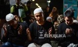 Komunitas Motor Bikers Dakwah memanjatkan doa saat syukuran ulang tahun yang pertama di Showroom Royal Enfield, Jakarta, Sabtu (14/12). (FOTO : Thoudy Badai_Republika)