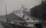 REPUBLIKA.CO.ID, KARAWANG -- Suasana lancar cenderung lengang di Jalan Tol Jakarta Cikampek Bawah mewarnai hari pertama pengoperasian Jalan Tol Layang Japek II di Karawang, Ahad (15/12).