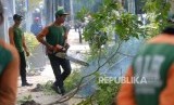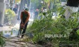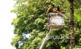 REPUBLIKA.CO.ID, YOGYAKARTA -- Petugas BLH Yogyakarta memangkas dahan pohon di kawasan Kota Baru, Yogyakarta, Senin (15/12). Pemangkasan ini untuk mengantisipasi dahan patah dan ambruk saat hujan dan angin di musim penghujan.
