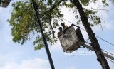 Petugas BLH Yogyakarta memangkas dahan pohon antisipasi datangnya musim penghujan..