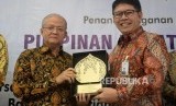 Direktur Usaha Syariah & Kredit UMK Bank DKI, Babay Parid Wazdi menerima plakat dari Ketua Umum Pimpinan Pusat Muhammadiyah, Anwar Abas dalam acara Penandatanganan Nota Kesepahaman pengggunaan jasa dan produk perbankan Bank DKI dengan  Muhammadiyah, di Jakarta (16/12). (FOTO : Bank DKI )