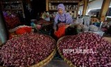 Pedagang bawang merah menjajakan dagangannya di Pasar Beringharjo, Yogyakarta, Senin (16/12/2019). (FOTO : Andreas Fitri Atmoko/Antara Foto)