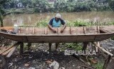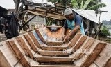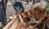 REPUBLIKA.CO.ID, BANDUNG -- Perajin menyelesaikan produksi perahu kayu di Kampung Mekarsari, Kecamatan Baleendah, Kabupaten Bandung, Senin (16/12).