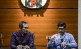 Wakil Ketua KPK Saut Situmorang dan Laode M. Syarif memberikan keterangan saat konferensi pers di Gedung KPK, Jakarta, Senin (16/12). (FOTO : Republika/Putra M. Akbar)