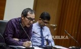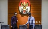 Wakil Ketua KPK Saut Situmorang dan Laode M. Syarif bersiap memberikan keterangan saat konferensi pers di Gedung KPK, Jakarta, Senin (16/12). (FOTO : Republika/Putra M. Akbar)