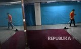 REPUBLIKA.CO.ID, JAKARTA-- Petugas membersihkan tempat relokasi pedagang kaki lima (PKL) Pasar Senen di lantai empat Pasar Metro Atom, Pasar Baru, Jakarta, Selasa (17/12). Pemerintah Kota Jakarta Pusat menargetkan penataan tempat relokasi tersebut dapat selesai pada pekan ini sehingga eks PKL Pasar Senen dapat segera berjualan kembali.