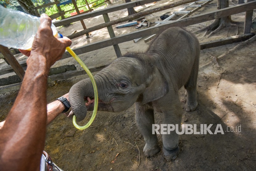 REPUBLIKA.CO.ID, PEKANBARU -- Bayi gajah sumatera (Elephas maximus sumatrensis) liar yang kakinya terluka akibat jerat pemburu di Provinsi Riau, terpaksa minum susu formula dari botol melalui selang karena terpisah dari induknya.