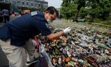 Barang bukti minuman keras hasil kegiatan kepolisian Polda Metro Jaya yang dimusnahkan di Polda Metro Jaya, Jakarta, Kamis (19/12). (FOTO : Thoudy Badai_Republika)